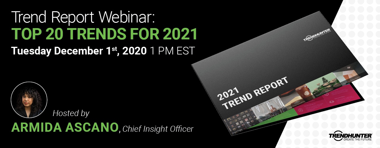 | Greetings, | Kick start the new year with an innovative mindset! Join our Chief Insight Officer, Armida Ascano, and I for a fireside chat of the Top 20 trends impacting your consumer right now. Our discussion will be based on our The 2021 Trend Report Make your lunchtime count, and Register HERE Download the Top 100 - 2021 Trend Report PDF It's our final webinar of the year, so let's end with some inspirational thoughts about 2021! • Boost 2021 with forward-thinking insights • Know what your customers will want in 2021 • Get inspired to take action • Feed your culture of innovation |  | | Enjoy! |  Jeremy Gutsche CEO, Author & Keynote Speaker - JeremyGutsche.com | | | |